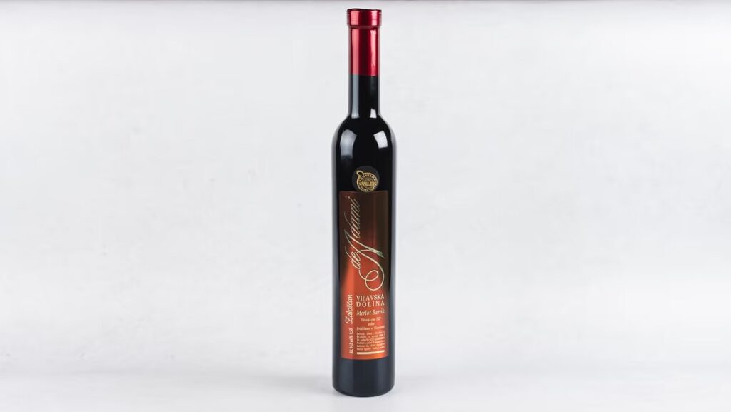 Letnik 2004. Tudi Merlot barrique je eno najprijetnejših vin iz te kleti. Njegova barva nas očara s češnjevo rdečimi odtenki in škrlatnim odbleskom, njegov vonj pa je dokaj intenziven, bogat, predvsem sadni in začimbni. V cvetici se odpirajo vonji po gozdnih sadežih, zrelih slivah, pa tudi po vrtnicah. Vino je suho, toplo, okusno in harmonično, srečujemo lahko celo paleto terciarnih zaznav, značilnih za staranje v lesenih sodih. Njegovo telo je polno in krepko; ima veliko suhega ekstrakta in če ga bomo postregli k prekajenim suhomesnatim izdelkom, bo doživetje tega vina še lepše. Letnik 2004.